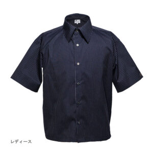 カジュアルにもフォーマルにも、リラックスして着れるストライプシャツ M001SHORTSLV-NVは、紺と灰色のストライプ柄の半袖シャツです。ボタンを開けばカジュアルにも羽織れる一品で、一枚持っていると重宝します。SとMサイズがレディース、Lサイズがメンズ仕様となっています。