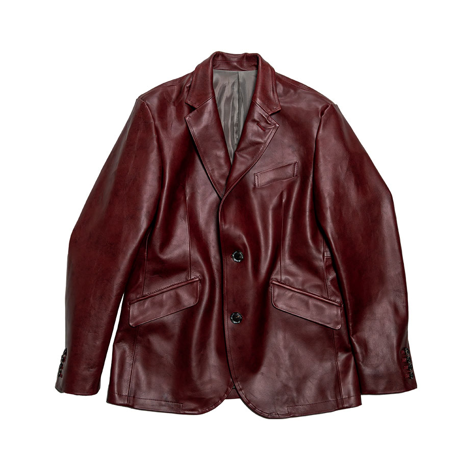 神戸ビーフレザー仕様のジャケット、上品にもラフにも合わせられる一品 KJ001WRは神戸ビーフを用いたワインレッドのレザージャケットです。レザー独特のワイルドさはあるものの、スタイルや縫製を丁寧に行ったことで非常に上品な仕上がりとなっております。そのカラーから、ビジネスのみならずカジュアルシーンでも多用できると確信しております。なお、本品は受注後の生産(納期目安3カ月前後)となります。